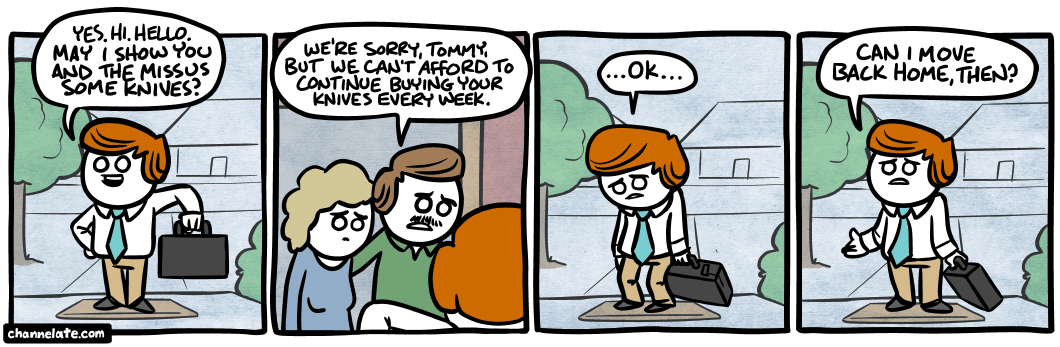 Door to door. by Ryan on 2013/01/29 at 2:26 pm Chapter: comics If you’re looking for a way to find out about new Channelate comics, but you don’t like reading RSS feeds, you can always follow Channelate on Facebook and Tumblr or follow me on Twitter. └ Tags: 4